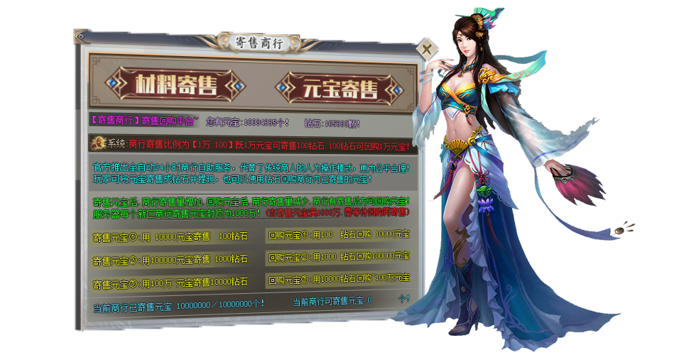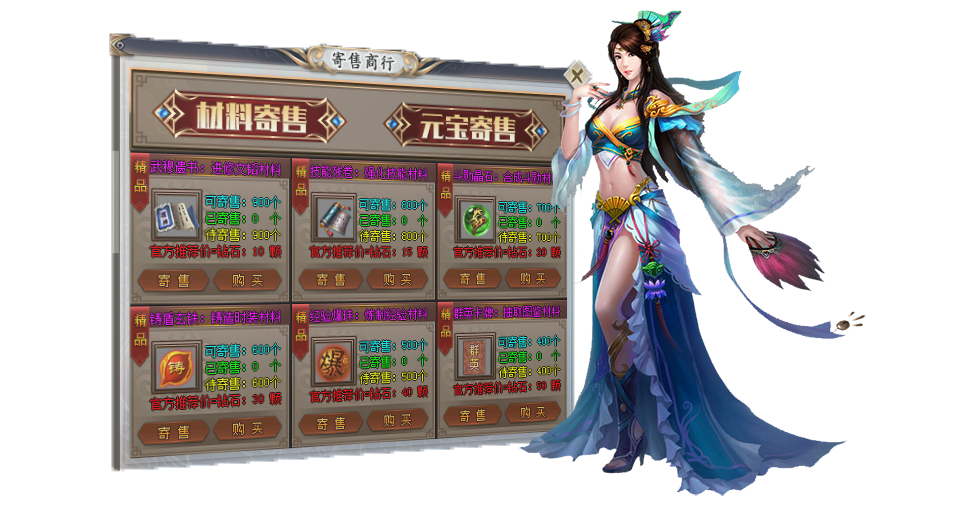 全网独家寄售商行功能,玩家打到的材料和元宝拿去寄售,官方垫付钻石打金秒变现